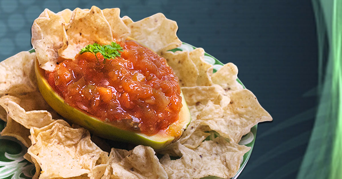 Green roasted tomatillos and coral-colored papaya come together for a fresh-tasting salsa. This works as a dipping salsa, on grilled chicken or as a topping over eggs. Why wash a bowl when the Solo naturally provides one? If too tipsy, just cut a thin slice off the bottom for a base.