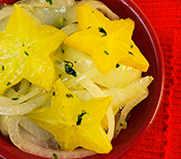 No need for canning to pickle onions and starfruit. The refrigerator will do it all. A great appetizer or side dish for the main...